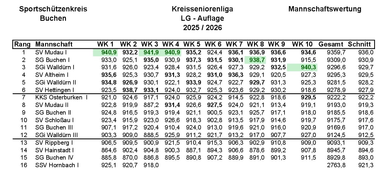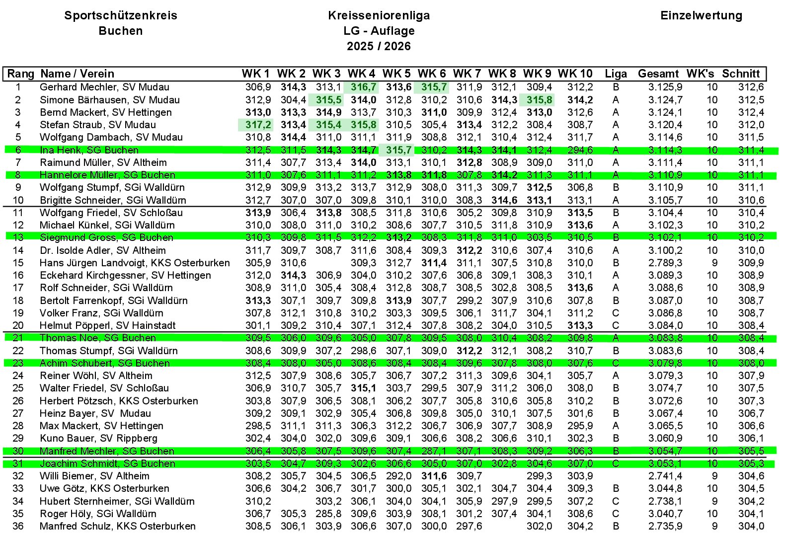 Die 10 Wettkampftage der Saison 2025/2026 sind abgeschlossen. Unsere Schützen haben starke Ergebnisse abgeliefert und wir freuen uns über folgende Ergebnisse: