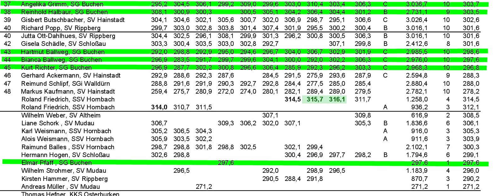 Die Mannschaft SGi Walldürn I errang mit den Schützen Brigitte Schneider, Michael Künkel und Rolf Schneider in der Kreisoberliga den 3. Platz und in der Gesamtwertung den 3. Platz.