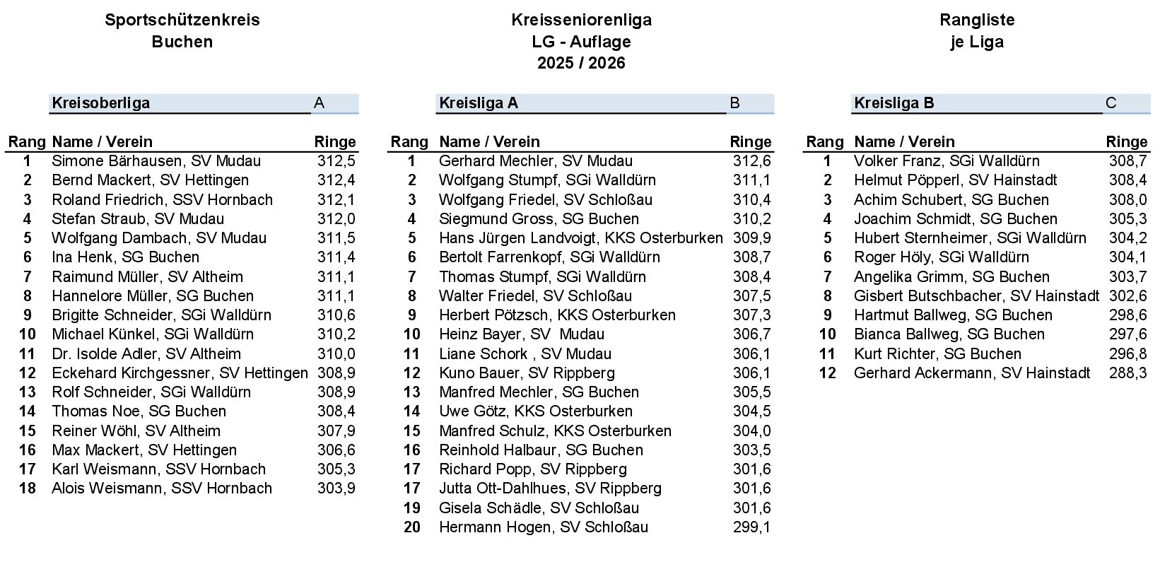 Kreisoberliga Buchen – Luftgewehr Auflage 2025 / 2026